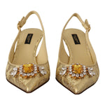 Dolce & Gabbana Gold Crystal Slingbacks Pumps Heels Shoes