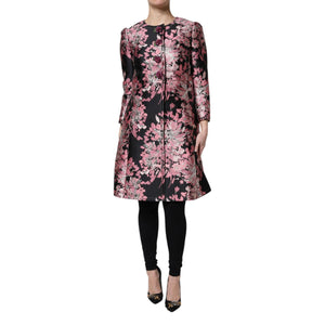 Dolce & Gabbana Pink Black Floral Brocade Trenchcoat Jacket