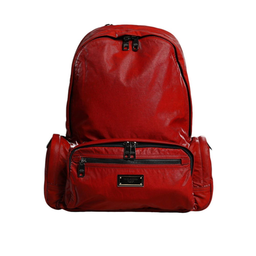 Dolce & Gabbana Red Patent Leather Logo Plaque Backpack Bag