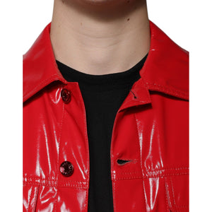 Dolce & Gabbana Red Polyester Button Down Collared Jacket