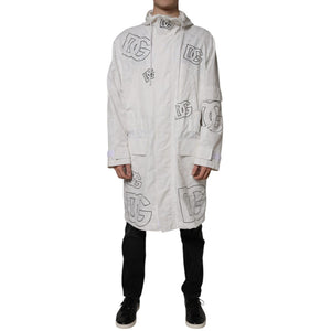 Dolce & Gabbana White Hooded Parka Polyester Trench Coat Jacket