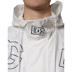 • Dolce & Gabbana White Hooded Parka Polyester Trench Coat Jacket