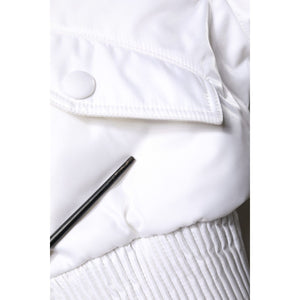 Dolce & Gabbana White Nylon Full Zip Cropped Bomber Jacket