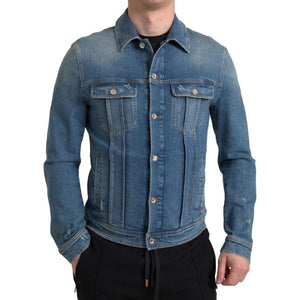 Dolce & Gabbana Blue Washed Cotton Stretch Denim Men Jacket