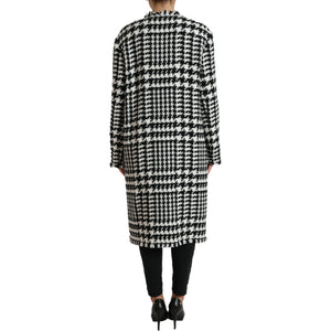 Dolce & Gabbana Black White Houndstooth Trench Coat Jacket