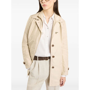 beige hook fastening concealed front zip fastening two side flap pockets buttoned cuffs Popeline morning coat Size and Fit - This piece fits true to size. We recommend you get your regular size. Model is 1,75m / 5ft 8in wearing size S