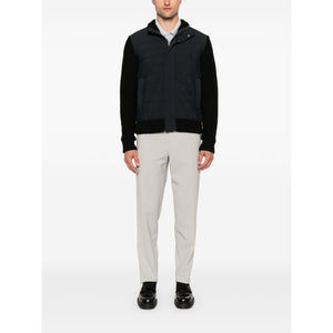 black virgin wool quilted ribbed knit panelled design high neck front press-stud and zip fastening contrasting-fabric sleeves ribbed cuffs and hem two side stud-fastening pockets straight hem full lining Nylon and wool bomber jacket Size and Fit - This piece fits true to size. We recommend you get your regular size. Model is 1,84m / 6ft 1in wearing size 48 (IT)