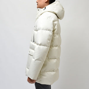 Elevate your sartorial game with this immaculate Herno medium down jacket. White as the driven snow, this piece adds an air of sophistication to any ensemble. Engineered with meticulous attention to detail, offering a snug hood with an adjustable drawstring for those brisk days. The quartet of pockets ensures functionality without compromising on style – featuring two waterproof zipper pockets and a duo of buttoned side pockets. Sealed with a waterproof zipper, this jacket is a harmonious blend of fashion and utility. Journey through the elements with this Herno masterpiece as your armor.