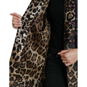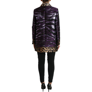 Dolce & Gabbana Purple Lamé Jacquard Tiger Print Coat Jacket