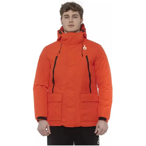 Dive into the epitome of style with Tond’s bold red jacket, a fusion of suave aesthetics and functional design. This water-repellent marvel is your shield against the elements, equipped with a zip closure and a protective hood. Adjustable drawstrings ensure a snug fit, while multiple pockets provide ample storage for your urban adventures. Made in Italy, this Tond jacket isn’t just a garment; it’s a statement of class.