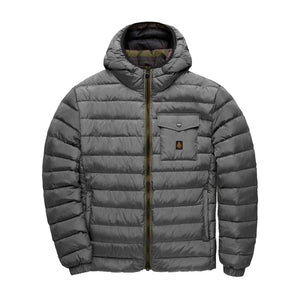 Unleash the boldness within with the Refrigiwear Hunter Jacket – a symbol of cutting-edge style combined with ultimate comfort for the modern man about town. Crafted from high-quality nylon, this down jacket commands attention with its sleek gray hue and dynamic design details. Boasting a practical double slider zip closure, secure side pockets, and additional chest pocket, each accented with stylish zippers and buttons. Embrace the chill with its 100% 90-10 down injection padding, ready to insulate you against the coldest of elements. Topped with a fixed hood, this jacket stands strong as your shield against wind and water. Contemporary yet timeless, don the Refrigiwear Hunter Jacket and make a statement wherever life takes you.