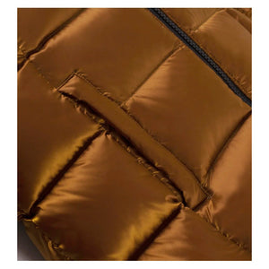 Experience the merging of function and luxury with Refrigiwear’s women’s short down jacket. Crafted for those who refuse to compromise style for warmth, this nylon masterpiece boasts a plush 100% feather padding. Its bold orange hue catches the eye while the fur-trimmed hood adds a touch of sophistication. Secure your essentials in the chic side pockets and embrace the elements with confidence. This Refrigiwear creation isn’t just a garment; it’s a statement.