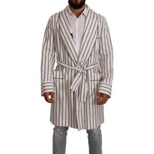 Dolce & Gabbana White Striped Cotton Robe Coat Wrap Jacket