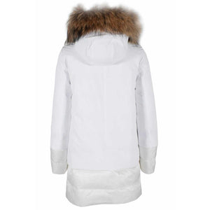 Embrace the cold in style with this exquisite Yes Zee down jacket. Crafted for warmth and elegance, it features a sleek nylon composition with a quilted fabric design on the lower part and cuffs. The front zip closure ensures a secure fit while the two side pockets add practicality. The luxurious touch is the hood, crowned with a sumptuous fur detail to keep you cozy and stylish in the chill.
